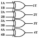 54LS386 / 74LS386 典型参数:tpd=10ns Pd=7.5mW/每门