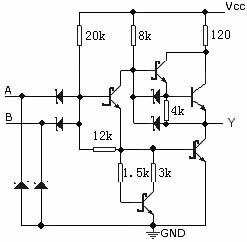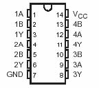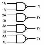 54LS00 / 74LS00 典型参数:tpd=9.5ns Pd=2mW/每门逻辑符号: