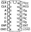 这种计数器是可全编程的,即输出可预置到任何电平。当预置是同步时,在置数输入上将建立一低电平,禁止计数,并在下一个时钟之后不管使能输入是何电平,输出都与建立数据一致。清除功能是同步的,不管使能输入为何电平,清除输入端的低电平将在下一个时钟脉冲之后把所有四个触发器的输出置为低电平。当用一个外接与非门来对所需的最大计数器进行译码时,这种同步清除可以很容易地改变计数长度。门输出与清除输入相连以同步将计数器清除到 0000(LLLL)。