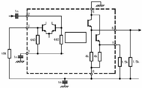 本电路是工作频率为 500MHz的 ECL÷2分频器。电路可以在单端输入或双端互补输入条件下工作。在这两种条件下,输入与信号源之间均为标准的电容耦合方式。本电路具有两个互补的射极跟随器输出。当使用外部下位电阻时,它们具有与 ECL10K系列电路相容的输出。