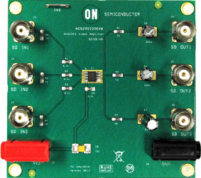 The NCS2553 Evaluation Board has been designed to help for a quick evaluation of the NCS2553, 3 channel video drivers with 3 Standard Definition filters. Among its main characteristics, this evaluation board has been constructed to easily interface with a customer's systems and equipment through BNC connectors.