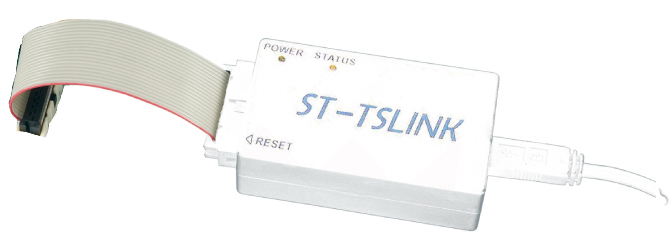 The ST-TSLINK dongle has been designed to program the STM8T14x devices in the easiest way possible. The ST-TSLINK simply plugs into a PC with ST Visual Programmer (STVP) software on one side and a 20-pin HE10 connector on the other side.