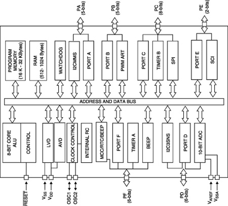 The enhanced instruction set and addressing modes of the ST7 offer both power and flexibility to software developers, enabling the design of highly efficient and compact application code. In addition to standard 8-bit data management, all ST7 microcontrollers feature true bit manipulation, 8x8 unsigned multiplication and indirect addressing modes.