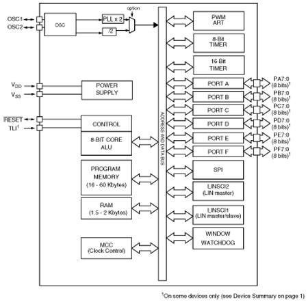 All devices are based on a common industry-standard 8-bit core, featuring an enhanced instruction set and are available with Flash or ROM program memory. The ST7 family architecture offers both power and flexibility to software developers, enabling the design of highly efficient and compact application code.