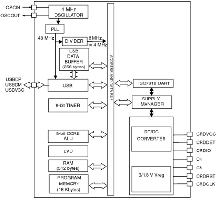- PLL for generating 48 MHz USB clock using a 4 MHz crystal