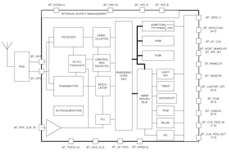 The STA2500D is a ROM-based solution targeted at applications requiring integration up to HCI level. Patch RAM is available, enabling multiple patches/upgrades and fast time to volume. The STA2500D’s main interfaces are UART or SPI for HCI transport, PCM for voice and GPIOs for control purposes.
