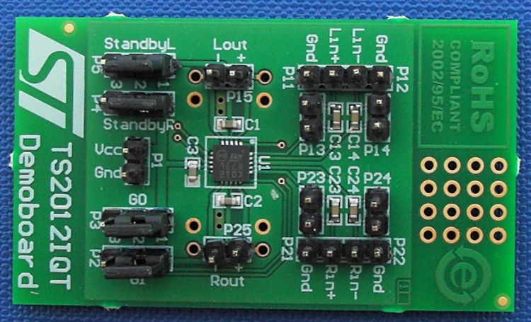 STEVAL-CCA007V1 Demonstration board for the TS2012 filter-free stereo 2x2.8W class D audio power amplifier