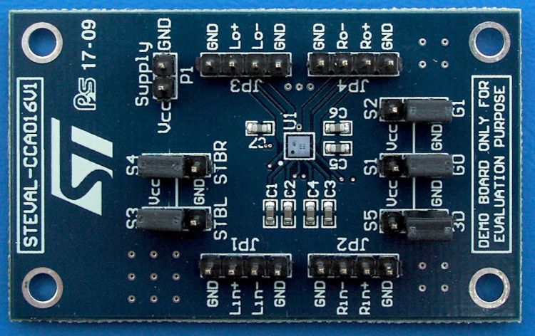 | STEVAL-CCA016V1 : Filter-free stereo 2.8 W Class-D audio power amplifier demo board with selectable 3D sound effects based on the TS4999 |