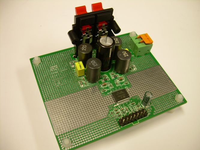 The STEVAL-CCA030V1 demonstration board is based on the STA350BW Sound Terminal digital amplifier and is an integrated solution for digital audio processing, digital amplifier control and FFX®-power output stage.