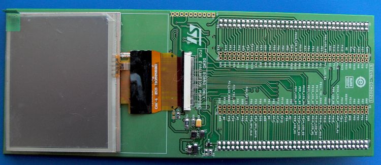 A 3.5” QVGA resolution TFT-LCD panel is interfaced with the STM32 FSMC peripheral. The board is designed to be connected as a daughterboard to the STM3210E-EVAL demonstration kit. .