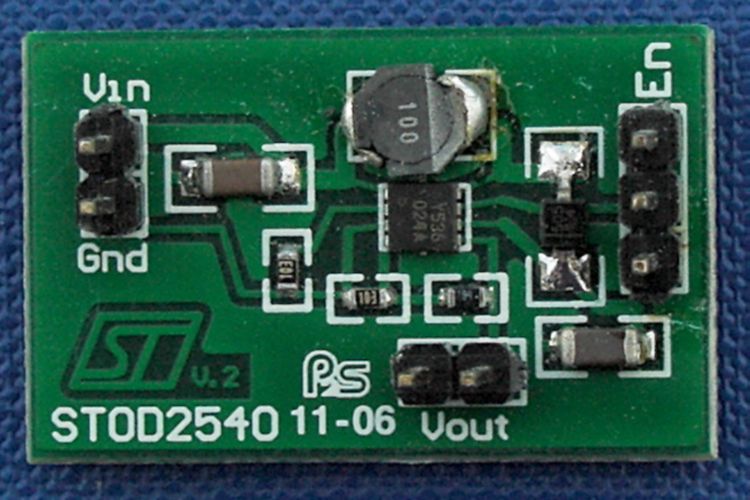 The STOD2540 is a boost converter that operates from 3.0 V to 5.5 V and can provide an output voltage as high as 25 V.