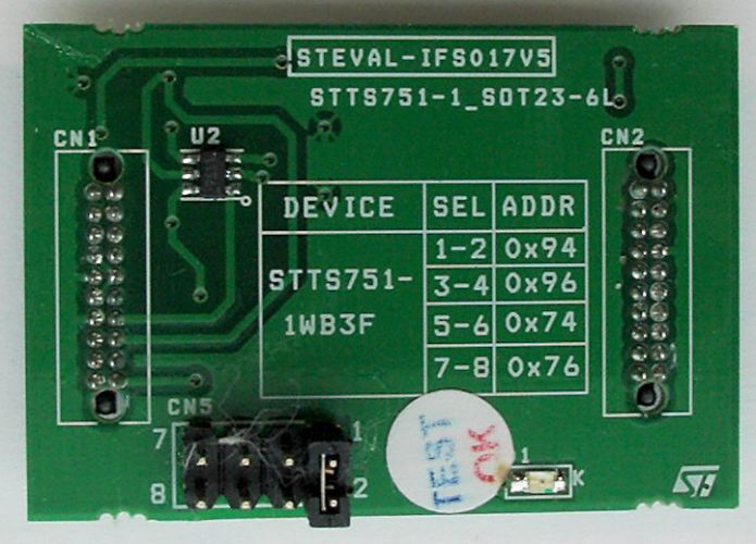 | STEVAL-IFS017V5 : DB1566: Temperature sensor daughter card based on the STTS751-1WB3F in SOT package |