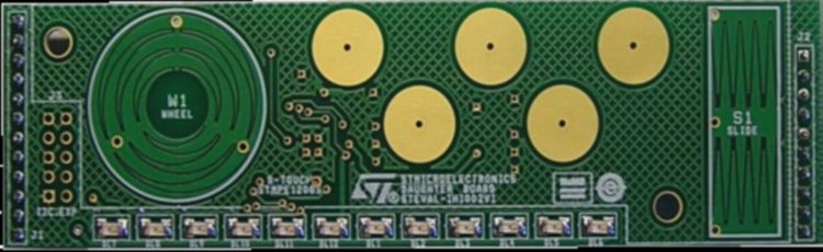 This demonstration board is designed to modernize or even fully replace a mechanic keyboard. The demonstration board is based on the STMPE1208S device, a 12-bit GPIO expander with an additional 12-channel capacitive sensing sensor, which is able to interface a main MCU through I²C bus. The demonstration board is designed to work as a daughter board for the STEVAL-IHI001V1 (washing machine user interface). Once plugged in, the STEVALIHI002V1 is automatically detected by the mother board, replacing the mechanic keys by a wheel, a slider and 5 buttons.