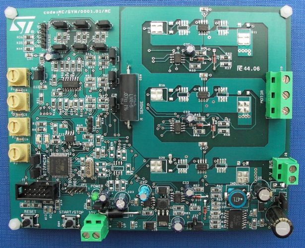 The STEVAL-IHM015V1 features complete hardware for developing motor control applications based on ST7MC peripherals including motor control peripherals (MTC), and serial communication interface (SCI).