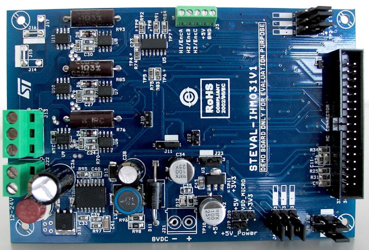 STEVAL-IHM031V1 Three phase low voltage inverter power board for FOC and scalar motor control based on STS8DNH3LL MOSFET