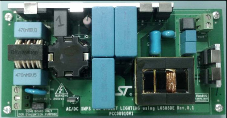 The STEVAL-ILL038V1 demonstration board implements a 100 W LED switched-mode power supply (SMPS) based on the L6585DE. This device embeds a high-performance transition mode (TM) Power Factor Correction (PFC) controller, Half-Bridge (HB) controller and all the relevant drivers necessary to build a combo IC.