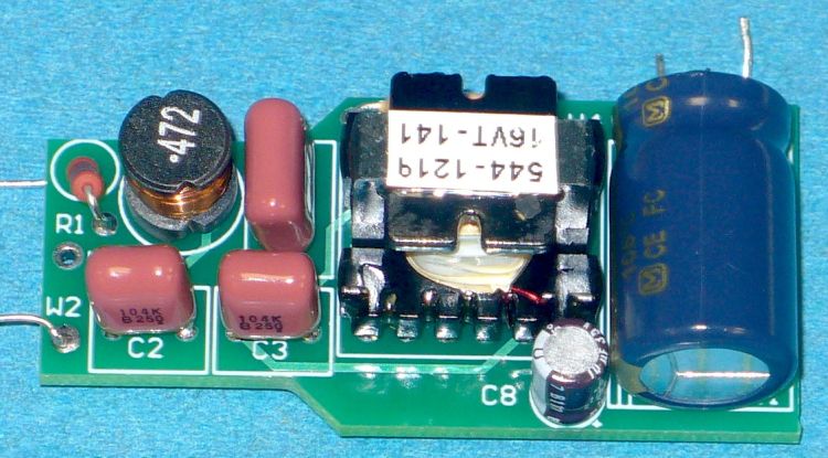 The PFC-flyback power converter operates in transition mode for the highest efficiency and best use of components.