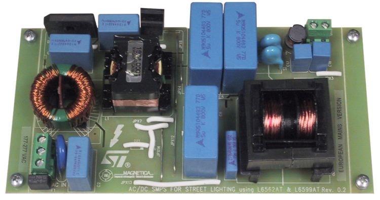 The STEVAL-ILL052V1 demonstration board implements a 130 W LED power supply for street lighting.