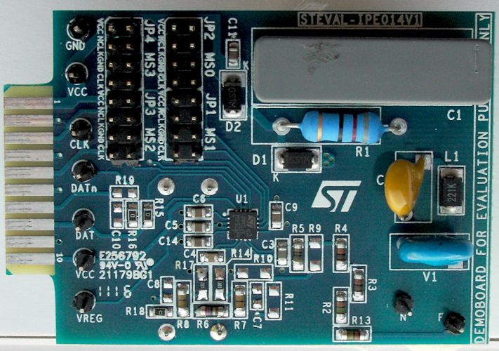 When connected to the motherboard, each STEVAL-IPE014V1 daughterboard serves a single phase, converting and multiplexing the voltage and current information and sending the stream to the STPMC1 energy calculator IC.
