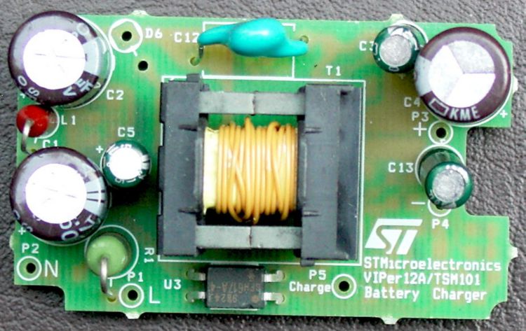 The simple and cost-effective design is based on the Viper12AS-E low power off-line SMPS primary switcher for power conversion, and the TSM101 voltage and current controller for monitoring the battery charge level