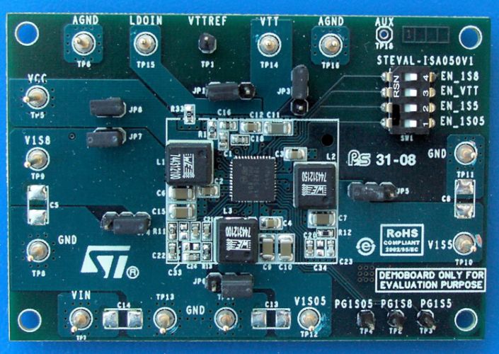 STEVAL-ISA050V1 Monolithic VR for chipset and DDR2/3 demonstration board based on the PM6641 Monolithic VR for Chipset and DDR2/3 Supply for Ultra-Mobile PC (UMPC) applications