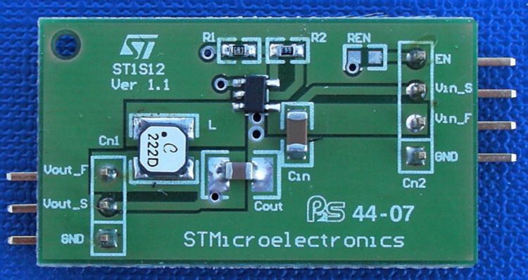 | STEVAL-ISA055V1 : DB0691: 0.7 A / 1.2 V synchronous buck converter with enable function based on the ST1S12XX |