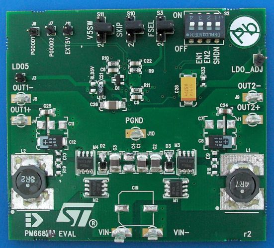| STEVAL-ISA067V1 : DB0819: Dual step-down controller with auxiliary voltages demonstration board based on the PM6681A for industrial system power |