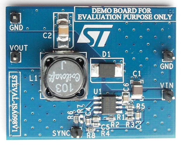 The STEVAL-ISA098V1 demonstration board is a step-down switching power supply based on the L7985A in HSOP8 package.