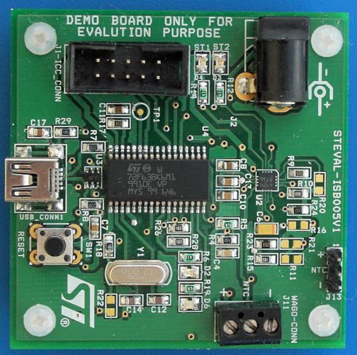 STEVAL-ISB005V1 Low-cost Li-Ion battery charger demonstration board based on the ST7263BK6 and L6924D