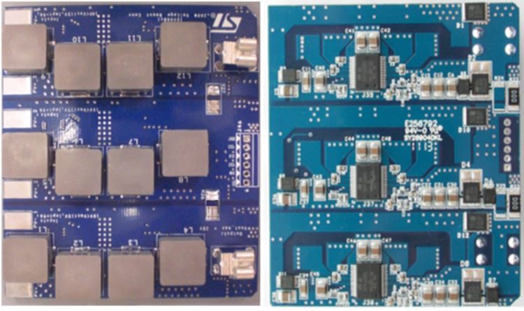 The STEVAL-ISV018V1 demonstration board contains three SPV1020s in the same PCB and is suitable for distributed PV panels with 3 isolated strings. The outputs of the SPV1020s can be connected in parallel or in series, despite the pairs of independent inputs.