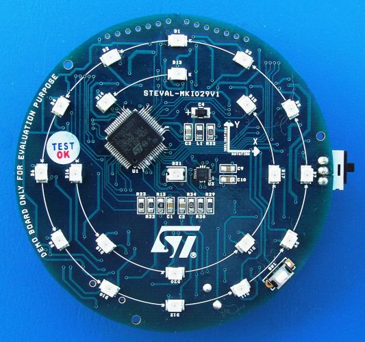 The STEVAL-MKI029V1 also features a demonstration mode. In this mode, different LED patterns are displayed irrespective of the position/motion of the board, making the system suitable for exhibitions and seminars.