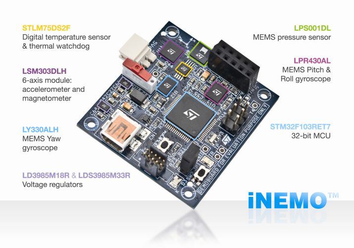 | STEVAL-MKI062V2 : iNEMO: iNErtial MOdule V2 demonstration board based on MEMS sensors and the STM32F103RE |