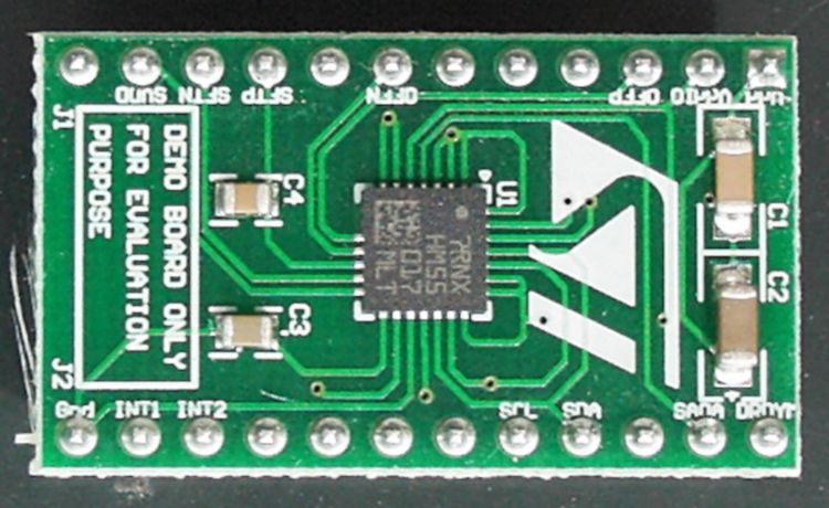 The STEVAL-MKI064V1 can be plugged into a standard DIL 24 socket. The adapter provides the complete LSM303DLH pinout and comes ready-to-use with the required decoupling capacitors on the Vdd power supply line.