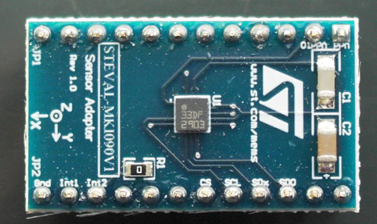 The STEVAL-MKI090V1 can be plugged into a standard DIL 24 socket. The adapter provides the complete LIS331DLF pinout and comes ready-touse with the required decoupling capacitors on the VDD power supply line.