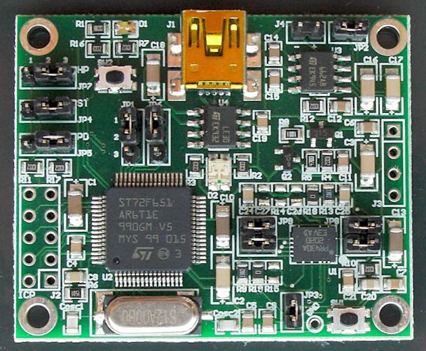 In addition to the MEMS sensor, the demonstration board uses an ST7 microcontroller which functions as a bridge between the sensor and the PC. This makes it possible to download the graphical user interface (GUI) from the website or to use dedicated software routines for customized applications.
