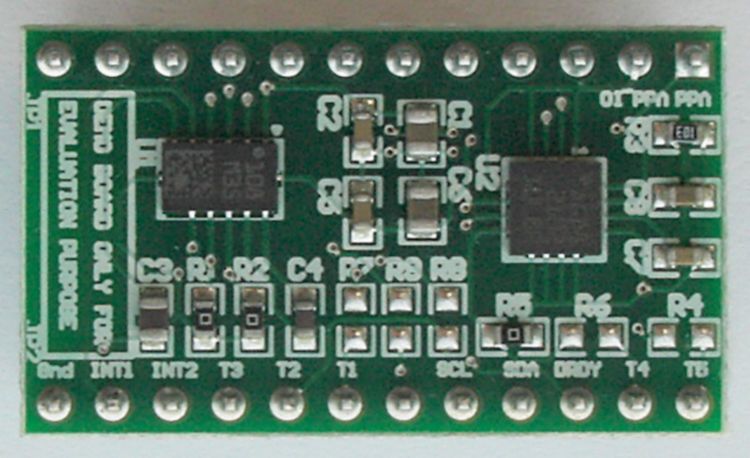 The STEVAL-MKI108V1 can be plugged into a standard DIL24 socket. The adapter provides the complete L3G4200D/LSM303DLHC pinout and comes ready-to-use with the required decoupling capacitors on the Vdd power supply line.