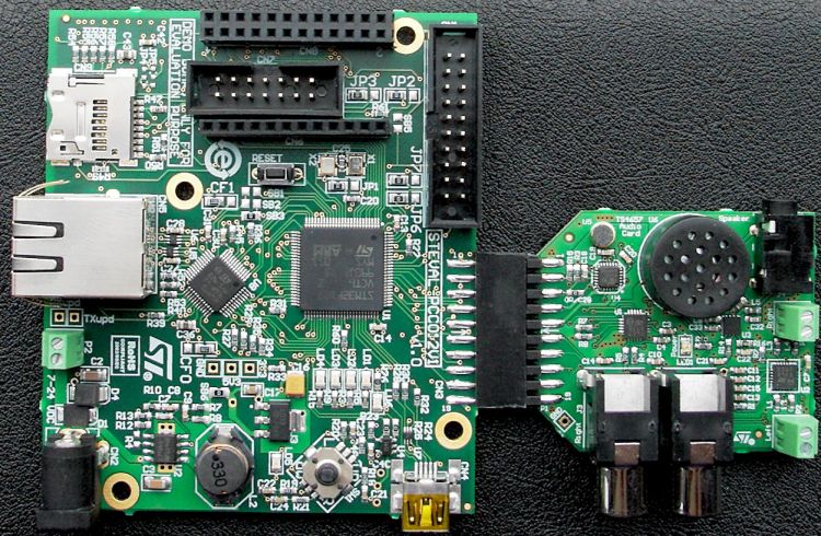 The STEVAL-PCC012V1 demonstration board is equipped with an Ethernet interface, four digital/analog extension connectors (I²C, SPI, etc.), footprint positions for two different Wi-Fi modules, an OFDM PRIME power line networking extension connector and a microSD card socket with SPI interface. It also features a 5-way joystick, four general-purpose LEDs and two LEDs dedicated to the user interface.