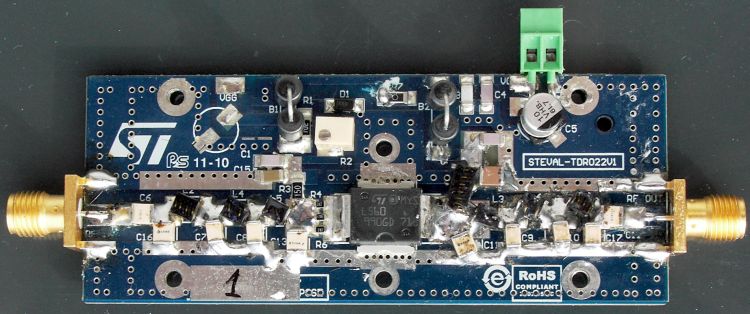 The STEVAL-TDR022V1 is an demonstration board using PD85025-E LDMOS transistor and designed for UHF OFDM and 2-way mobile radios.