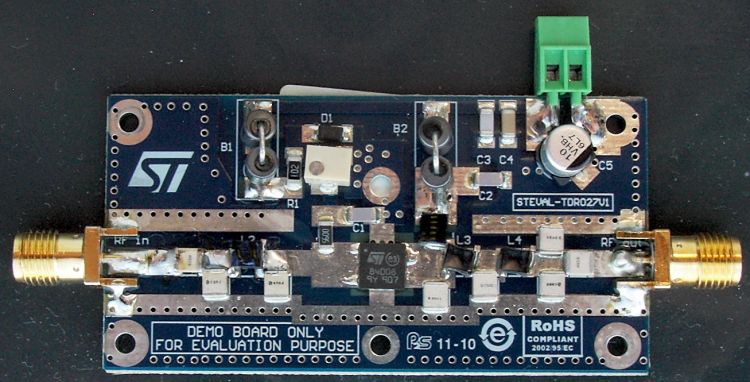 STEVAL-TDR027V1 6 W / 380 - 512 MHz evaluation board based on the PD84008L-E