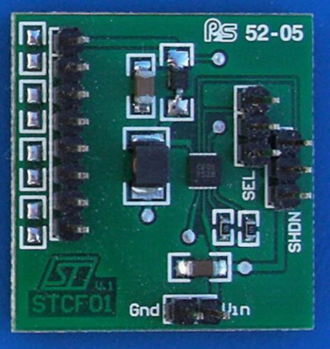 This evaluation board is based on the STCF01, that is a white LED driver optimized for driving two to four LEDs from a Li-Ion battery input.