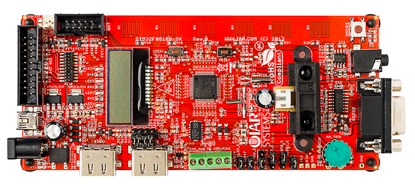The IAR KickStart Kit™ is a complete, cost-effective solution to start an application development and evaluate the STMicroelectronics STM32 F0 series ARM Cortex-M0 core-based microcontrollers.