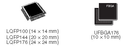 - Up to 4 USARTs/4 UARTs (10.5 Mbit/s, ISO 7816 interface, LIN, IrDA, modem control)