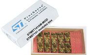 The STM8T141AM-MOD box contains 10 “blank” MB856 modules with unprogrammed device option bytes.