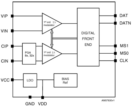 Dual-channel 1-bit, 2 MHz, 1st order sigma-delta modulator with embedded PGA |