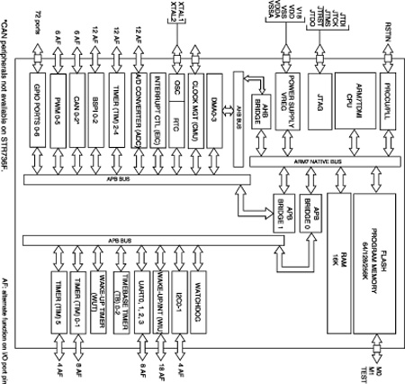STR73xF family combines the high performance ARM7TDMI™ CPU with an extensive range of peripheral functions and enhanced I/O capabilities. All devices have on-chip high-speed single voltage Flash memory and high-speed RAM. The STR73xF family has anembedded ARM core and is therefore compatible with all ARM tools and software.