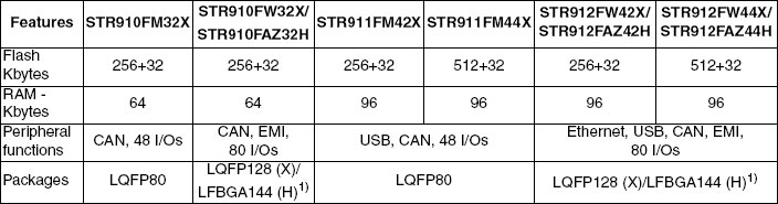 - STR9微控制器选型参数表