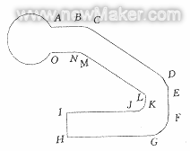 图2是某冲压件的零件图,若要自动生成此零件的冲裁凸模,首先要根据零件的要求及板料的厚度对零件图进行适当的偏移,然后再对偏移后的图形进行“多边形化”处理,并且计算各个圆弧的圆心,算出圆弧与水平直径的各个交点。根据上述的三种情况,将图中的各段圆弧用适当的线段替代,替代后的多边形如图3b所示。