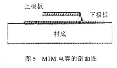 微波射频集成电路中的电容主要包括pn结电容、MOS电容、MIM(金属-电介质-金属)电容等。pn结电容和MOS电容属于半导体器件,这里不做讨论。MIM电容在微波集成电路中最为普遍,用于匹配、滤波、隔直流等,容值可到十几pF。MIM电容的剖面结构如图5所示。容值由上下层金属的重叠面积、介质的等效电介质常数和厚度决定,另外电容的电场分布还存在边缘效应,在电容面积较大时边缘效应可以忽略,当电容面积较小且工作频率很高时就需要考虑它的存在了。图6(a)是MIM电容的一种等效电路,这个等效电路中考虑了介质损耗和对地寄生等效应。射频微波电路中电容的面积不宜太大,否则在工作频率较高时分布效应就会非常明显,甚至呈现感性。在微波毫米波集成电路中要慎重考虑电容元件上下电极的连接、信号的传输方向和接入位置。微波电路中电容的传输效应可用图6(b)的形式等效,这种模型在低损耗的微波毫米波电路中经常采用,其中L表示电容的长度。
