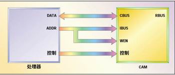 在CAM架构中还舍弃了SRAM和DRAM中传统的总线结构,取而代之的是使CAM能够在单个周期内完成管线检索的接口。单周期管线对处理峰值容量的长周期操作是必不可少的,因此,用户接口由四个独立的总线组成。
