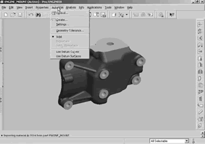 让我们先来看看最新的pro/engineer wildfire野火版2.0版中的模拟模块在外观和功能上的一些改变:最引人注目的首先是模拟用户界面的改进,指定模型类型这一典型的先期任务现已移到了一个对话框中,使此操作比以前版本更简单(如图1所示);其次,pro/engineer wildfire野火版2.0中的菜单管理器也脱离了用户界面,这意味着pro/engineer 窗口可占用整个桌面,使命令访问变得更直接、更简单(如图2所示);另外,在选取功能方面的改进包括选取对象操作参照以及选取操作的简化,用户可以方便的创建约束条件(如图3所示);最后,如果用户想更改工作模式,例如切换到 fem 模式,只需编辑模型类型即可(如图4所示)。